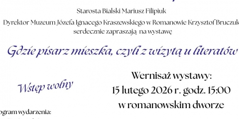 15 lutego br. romanowskie muzeum po raz 8. zorganizowało wydarzenie w ramach cyklu Tradycje dworów szlacheckich, Romanów Kraszewskich ich sąsiadów i gości. Głównym jego punktem był wernisaż wystawy Gdzie pisarz mieszka, czyli z wizytą u literatów.